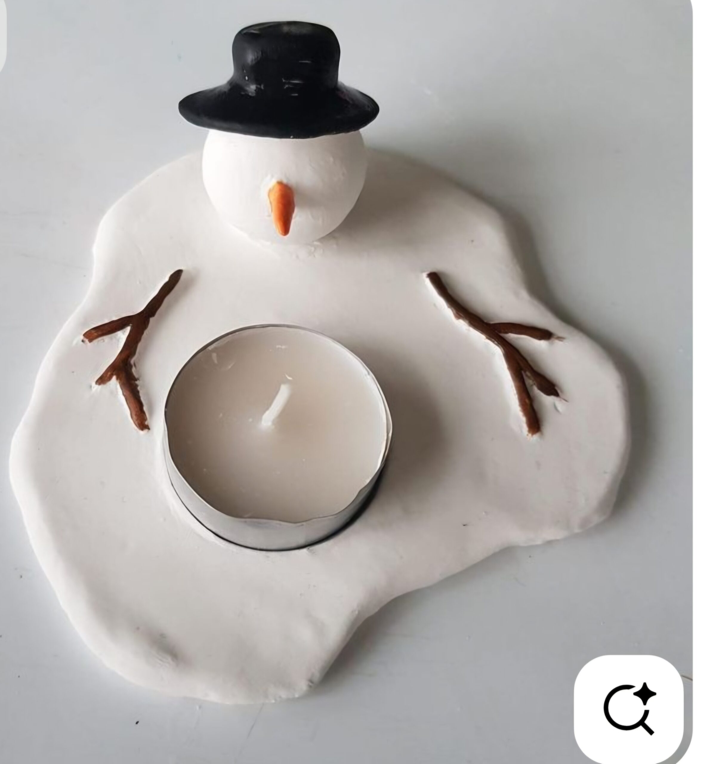 Melted snowman candle holder with candle! Cute, decorative piece that adds on to your Christmas decorations.