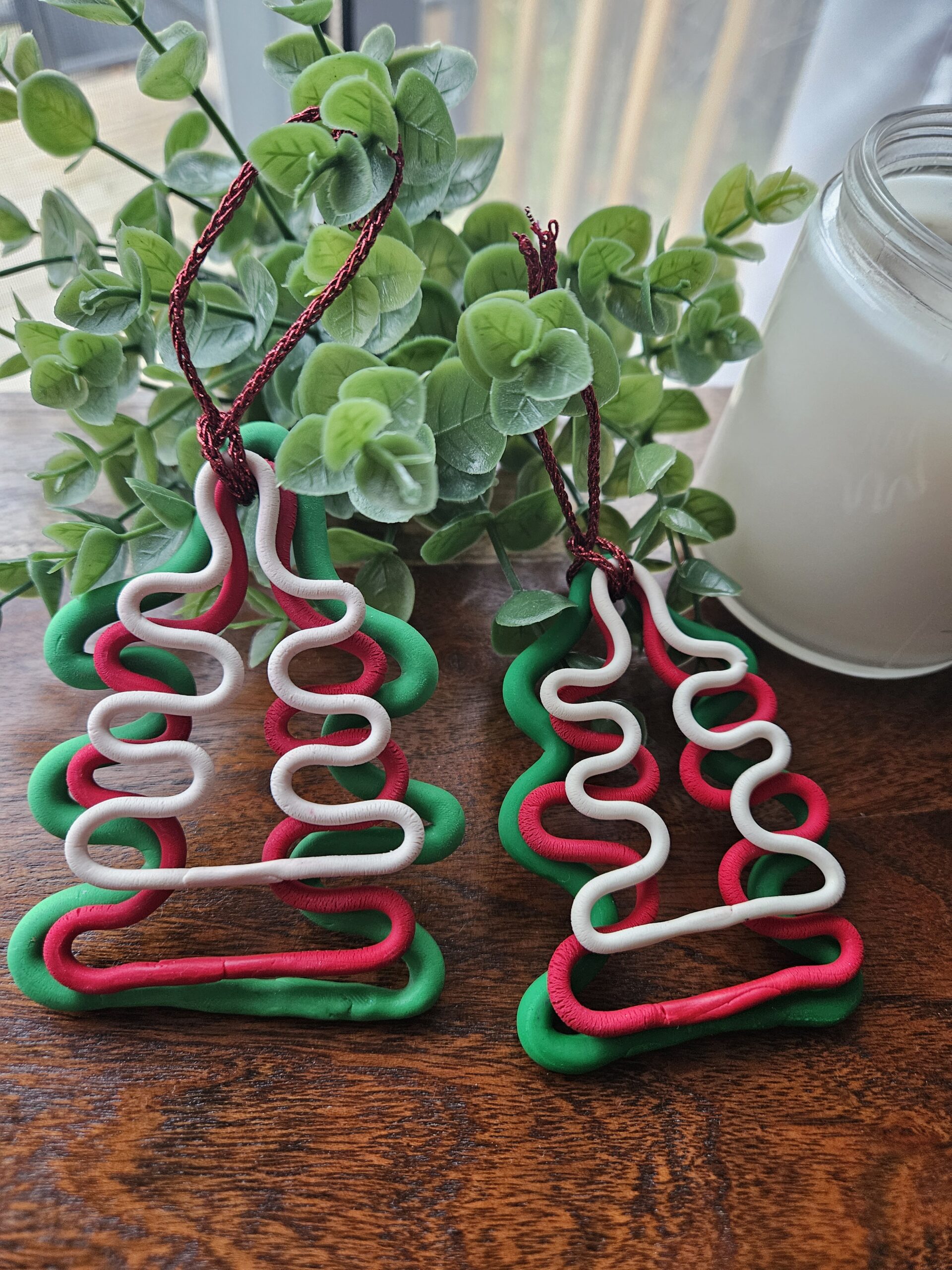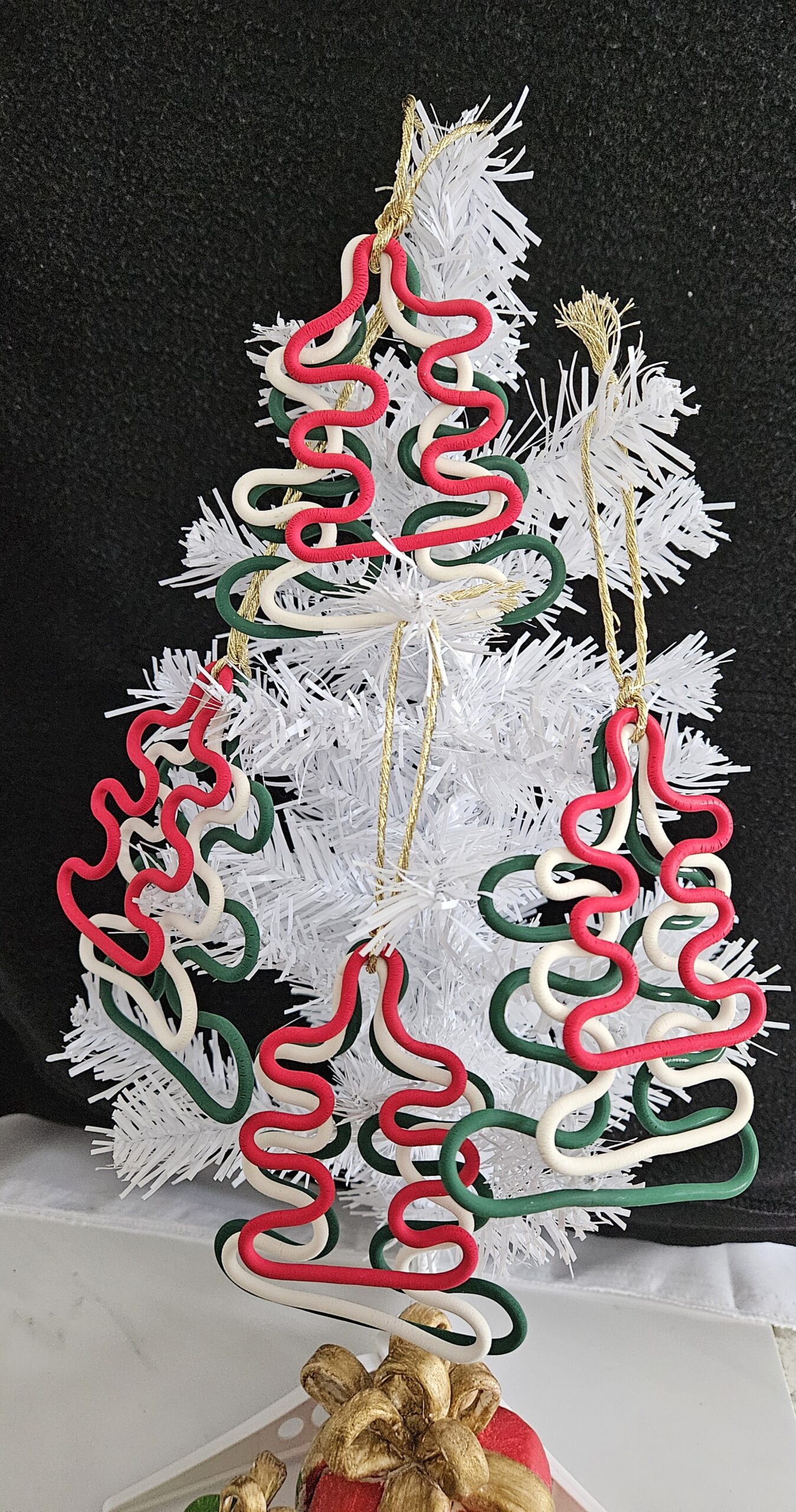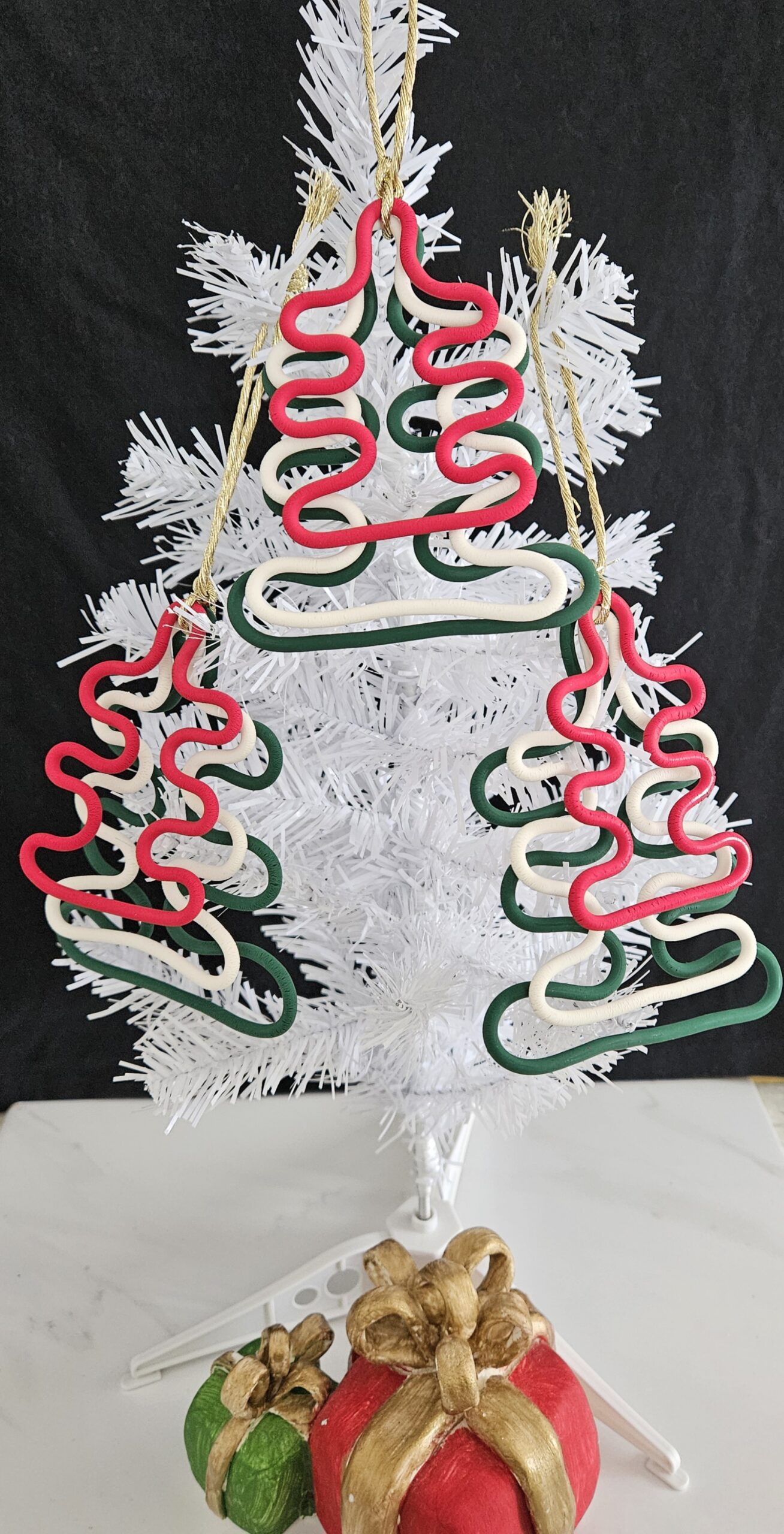 Three colors in one tree noodles shaped christmas ornament.