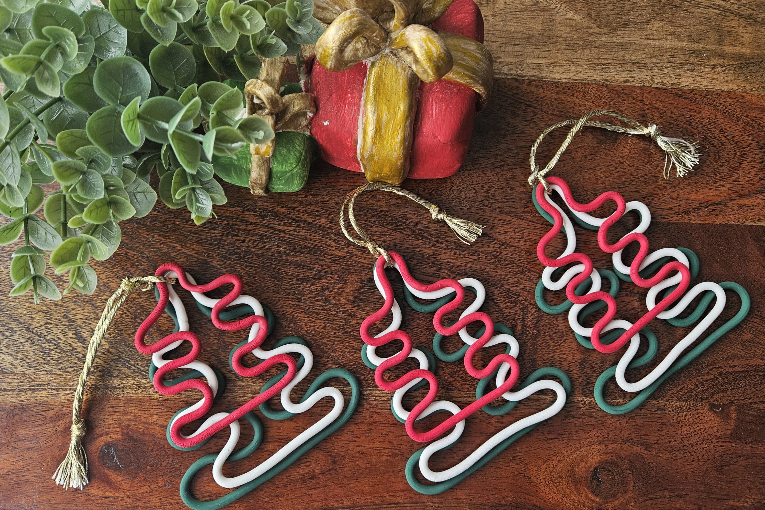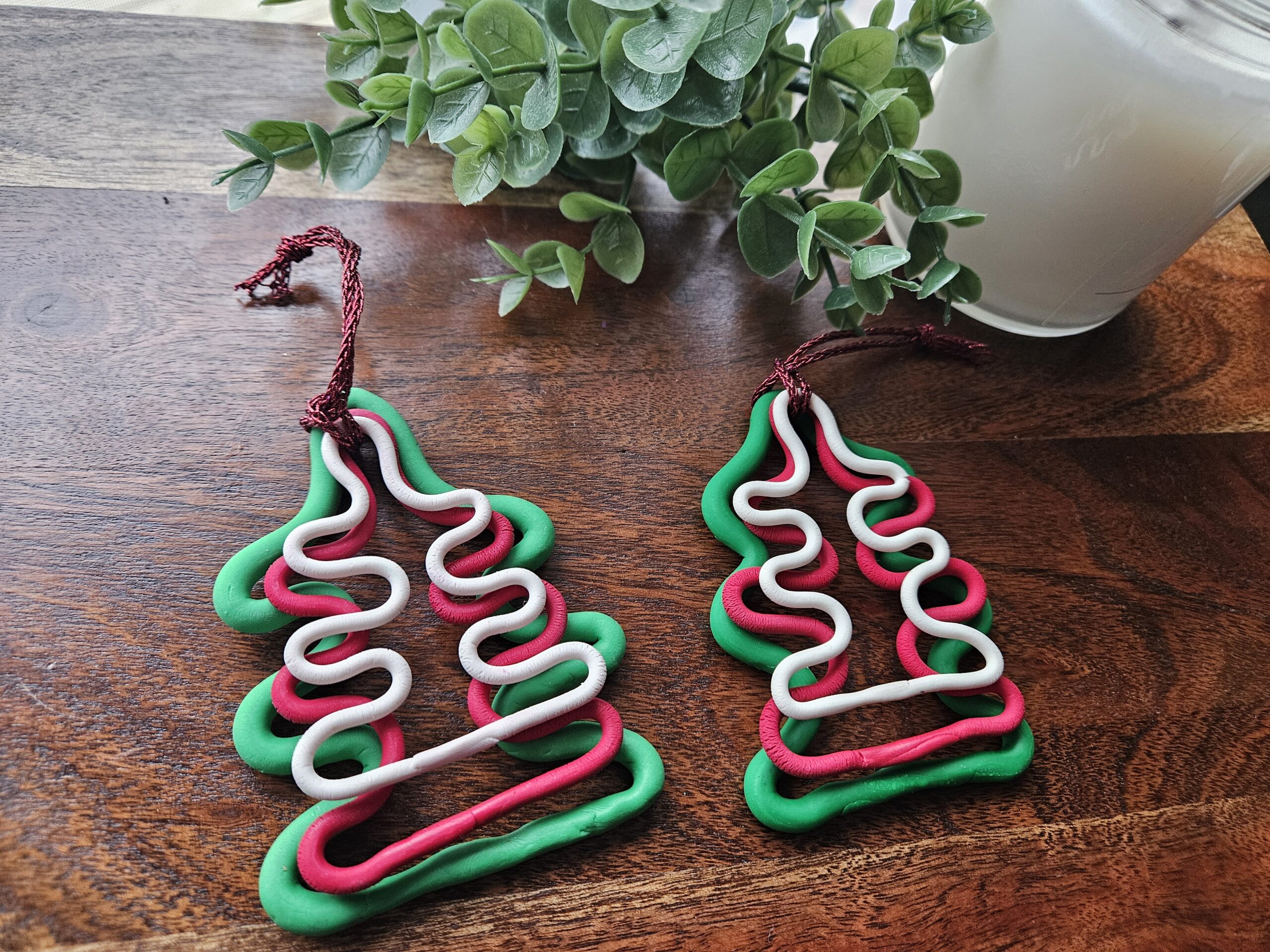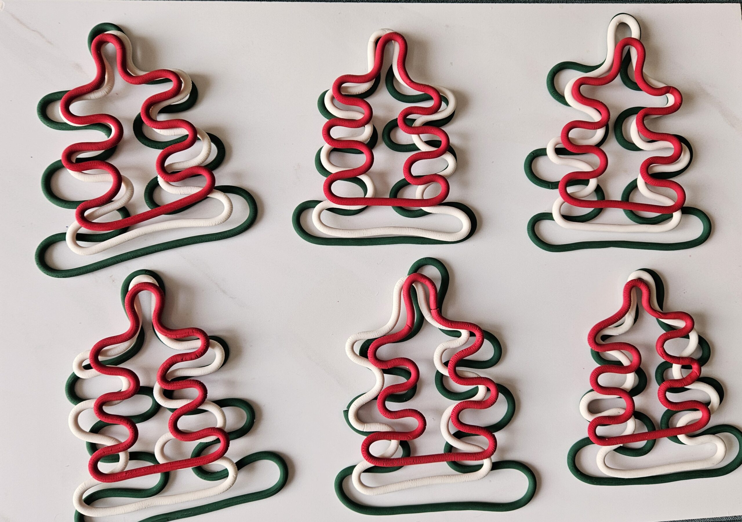 Three colors in one tree noodles shaped christmas ornament.